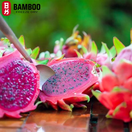 Thanh long được biết đến là loại trái cây nhiệt đới mọc ở Việt Nam. Nó có vỏ màu hồng sáng và ruột màu trắng hoặc đỏ với những hạt nhỏ màu đen. Thanh long rất giàu chất chống oxy hóa, vitamin C, chất xơ và khoáng chất. Nó có thể giúp tăng cường khả năng miễn dịch, giảm lượng đường trong máu, cải thiện tiêu hóa và ngăn ngừa nhiễm trùng. Thanh long có thể ăn tươi, sấy khô hoặc sấy thăng hoa. Tại Bamboo Freeze Drying, bạn dễ dàng tìm mua được những phẩm này, chúng tôi cung cấp các sản phẩm thanh long sấy khô và thanh long đông khô chất lượng cao, tự nhiên, tốt cho sức khỏe và thơm ngon. Bạn có thể thưởng thức chúng như đồ ăn nhẹ, thêm chúng vào sinh tố, món tráng miệng hoặc sử dụng chúng làm nguyên liệu cho công thức nấu ăn của bạn.